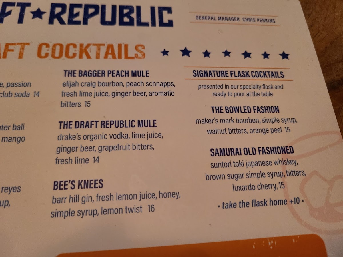 Burgers shine here too. The Draft Republic Burger dazzles with a smash patty topped with maple bourbon bacon and secret sauce, while the Fiery Mozzarella Burger delivers a spicy twist with fresh mozzarella and chile de arbol sauce. End your meal with indulgent desserts like Oreo Cheesecake and crispy Oreo Cookie Churro Bites for a sweet finale.